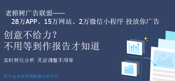 与老榕树广告联盟【u.lrswl.com】合作是非常好的选择,能让你的广告更精准,小编看到市场的僵尸平台太多了,钱花了最后得不到效果,我相信这不是任何人想看到的,拟用老榕树的一句话:“天下没有难以孵化的平台,让市场没有僵尸平台”。只有老榕树才具有真正的网站资源,因为老榕树是智能建站软件、老榕树智能建建微信小程序、老榕树智能建APP平台,老榕树智能微信营销软件的开发商,有上万的站长和APP、小程序,其它广告联盟是无法比的,其它的广告联盟多数是“僵尸平台”