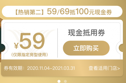 该现金券的抢购时间至11月15日,入住时间至2021年3月31日。可以先囤,在2021年3月31日之前均可使用。