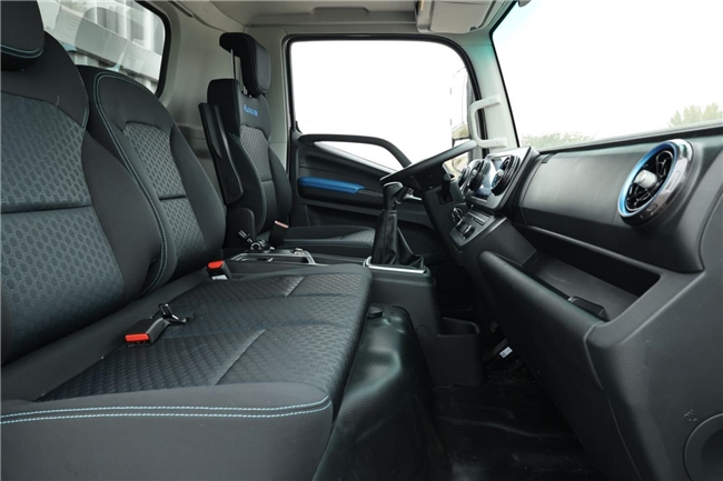在舒适体验上,新车配备2060mm宽的双密封驾驶室,驾驶室宽度位于行业头部水平,辅以全包内饰与标准隔音棉,以双通道密封结构有效隔绝噪音与粉尘,营造静谧、舒适的驾乘环境。搭配欧系底盘调校和符合人体工程学的座椅布局,让驾驶更稳、转向更准、长途不疲惫。