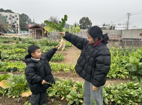 “以前担心农村幼儿园资源少,总纠结要不要送孩子到县城去上学。没想到幼儿园推出‘乡味育人’新模式,‘把乡野搬进学校,把课堂放在户外’的办学理念,给了我一个大大的惊喜。”胡钰是源南乡本地人,家中两个孩子都在该园就读。她欣喜地说,春天老师带着孩子们养蚕观察生命成长,夏天一起去菜园种菜、浇水,感受耕耘乐趣,秋天共同分享劳动喜悦。“现在孩子们认识了好多农作物和小动物,还变得特别开朗活泼。”