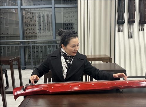 吴婷在“夜”学苑投入地弹着古琴。